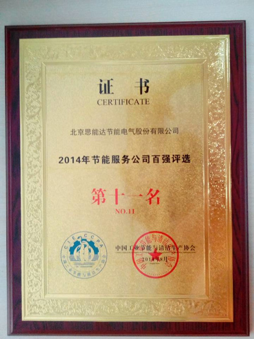 2014中国节能减排大会暨百强榜发布会于2014年8月26日在深圳举行。本次论坛主题为:绿色工业创新与发展。会议发布了2014年节能服务公司百强研究报告以及百强榜榜单。问鼎(中国)荣获第十一名。