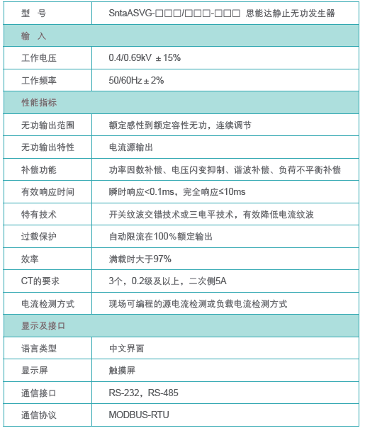 导致跳闸事故。Snta ASVG可以产生等值反向的补偿电流滤除电网中的谐波,补偿容量最大值为装置容量的30%。